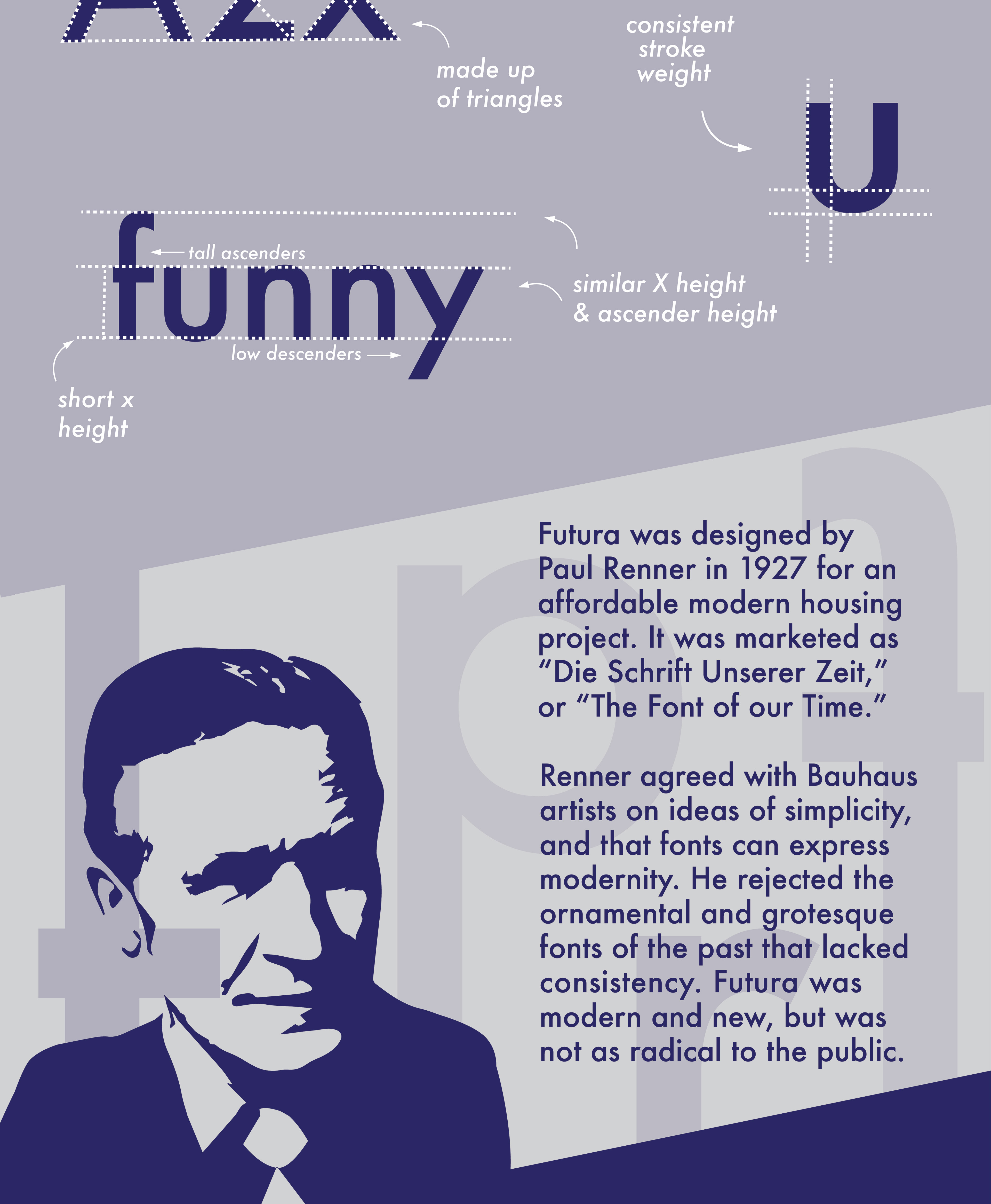 An annual project for the Typography 1 class at EIU is the typographic analysis poster. In this tall format poster I explore the style, history, and uses of Futura.